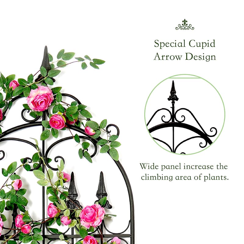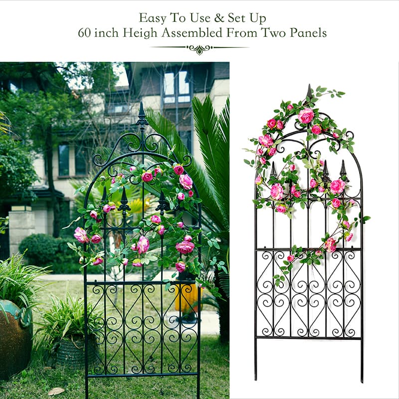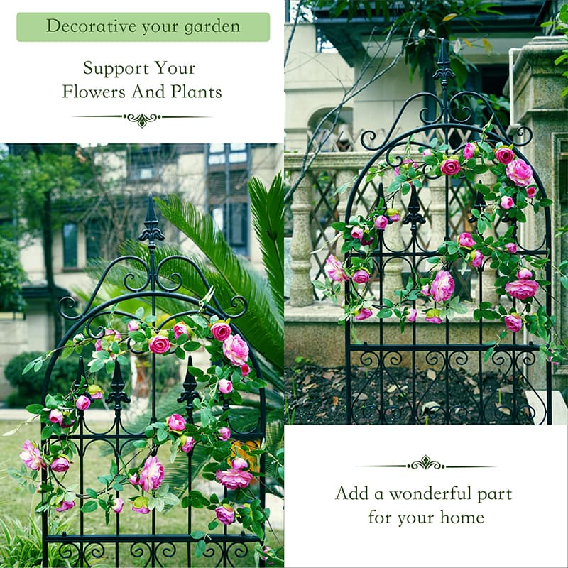 🎍The outdoor decorative trellis is made of iron with rust proof black powder coated finish, which makes it could be used for both outdoor and indoor decoration to be rustproof clematis trellis, climbing plant trellis.